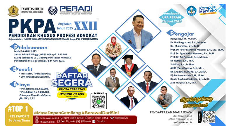 antara Fakuktas Hukum UWKS dengan Perhimpunan Advokat Indonesia DPN & DPC PERADI Surabaya.